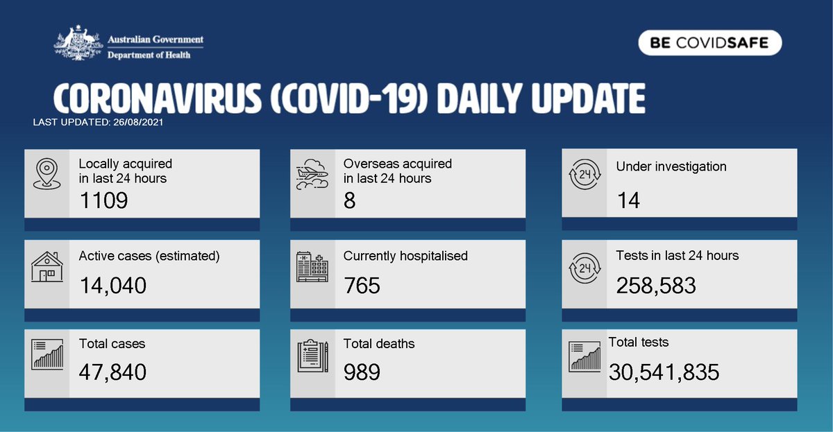 There have been three new locally acquired cases of COVID-19 today. Update on Covid-19 Wednesday 25 August 2021. Todays cases are a woman and a man in their 20s.